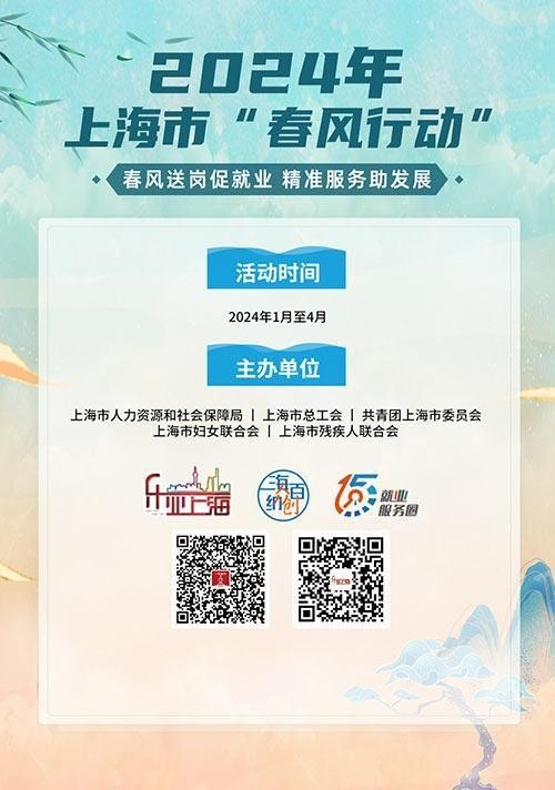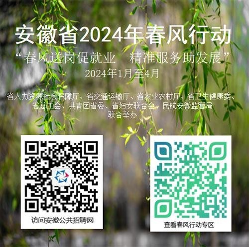 2024年春風行動正在各地火熱開展。今天,人力資源社會保障部公布各地春風行動活動專區(qū)、招聘服務平臺以及微信小程序,發(fā)布現(xiàn)場招聘會、網(wǎng)上招聘會、直播帶崗等活動安排以及企業(yè)用工需求,將崗位送到勞動者身邊。大家可通過掃描下方二維碼、點擊網(wǎng)站鏈接、進入微信小程序查看。