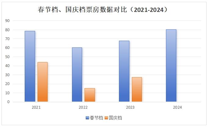 雖然春節(jié)檔有自帶的氛圍屬性,但是中新文娛查閱了近3年的對(duì)比:2021年春節(jié)檔票房78.43億、國(guó)慶檔票房43.89億;2022年春節(jié)檔票房60.4億、國(guó)慶檔票房14.99億;2023年春節(jié)檔票房67.66億、國(guó)慶檔票房27.36億。