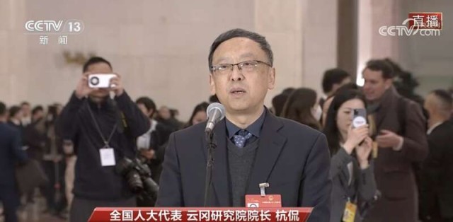 3月5日,十四屆全國人大二次會(huì)議首場“代表通道”上,全國人大代表、云岡研究院院長杭侃接受采訪。直播截圖