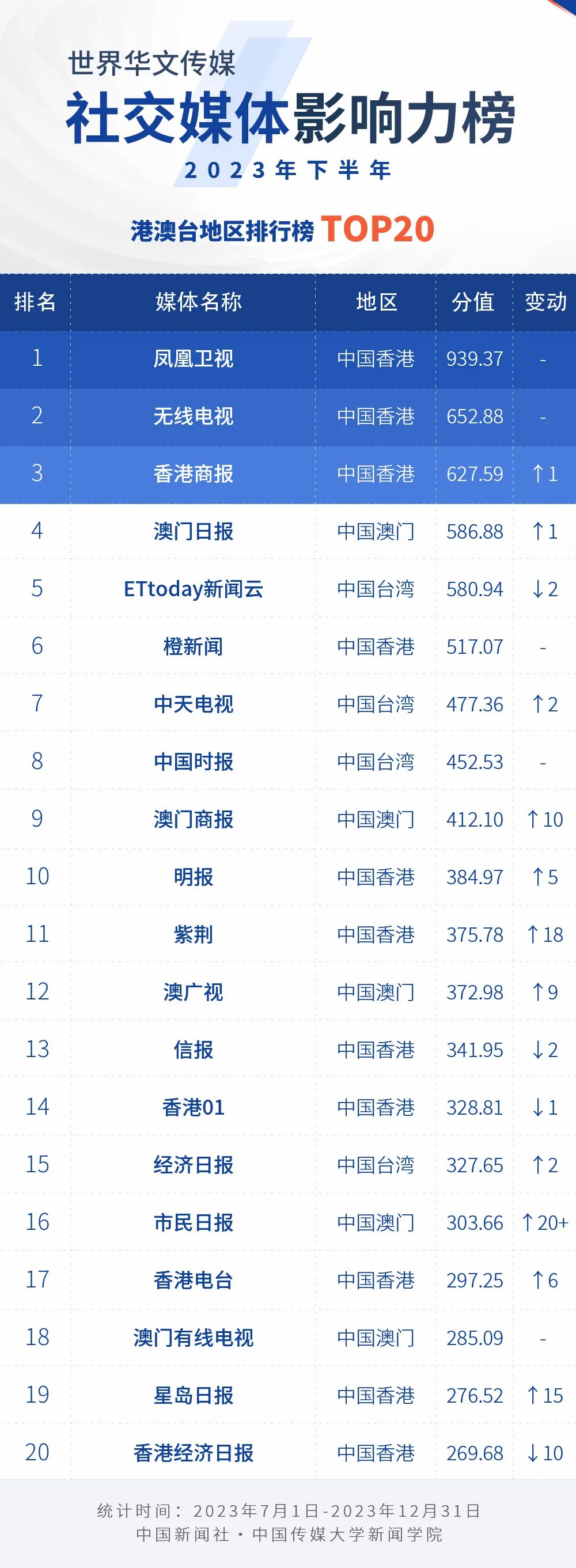 2023年下半年世界華文傳媒新媒體影響力榜