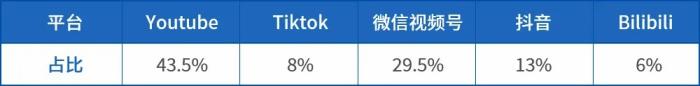 短視頻賬號方面,近年來,華文媒體在短視頻領域的業(yè)務迅猛發(fā)展。據(jù)統(tǒng)計,僅YouTube、TikTok、微信視頻號、抖音、Bilibili五個平臺,已經(jīng)有超過500個華文媒體賬號,分布情況如下: