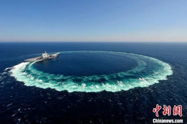 山東艦進(jìn)行大舵角試驗(yàn)。李剛 攝