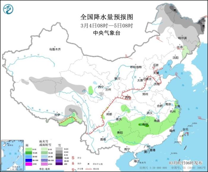 全國降水量預報圖(3月2日08時-3日08時)