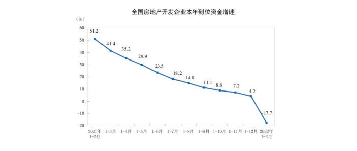 1—2月份,房地產(chǎn)開發(fā)企業(yè)到位資金25143億元,同比下降17.7%。其中,國(guó)內(nèi)貸款4105億元,同比下降21.1%;利用外資7億元,下降27.4%;自籌資金7757億元,下降6.2%;定金及預(yù)收款8027億元,下降27.0%;個(gè)人按揭貸款4124億元,下降16.9%。