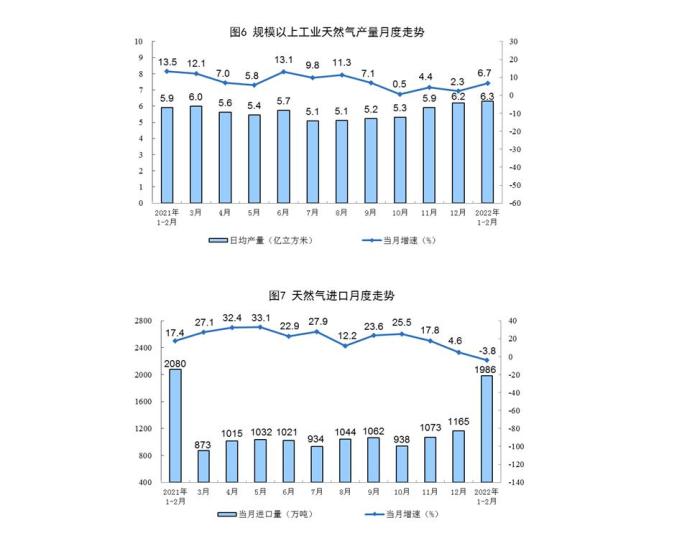 天然氣生產(chǎn)保持增長(zhǎng),進(jìn)口下降。1—2月份,生產(chǎn)天然氣372億立方米,同比增長(zhǎng)6.7%,增速比上年12月份加快4.4個(gè)百分點(diǎn),日均產(chǎn)量6.3億立方米。進(jìn)口天然氣1986萬(wàn)噸,同比下降3.8%,上年12月份為增長(zhǎng)4.6%。