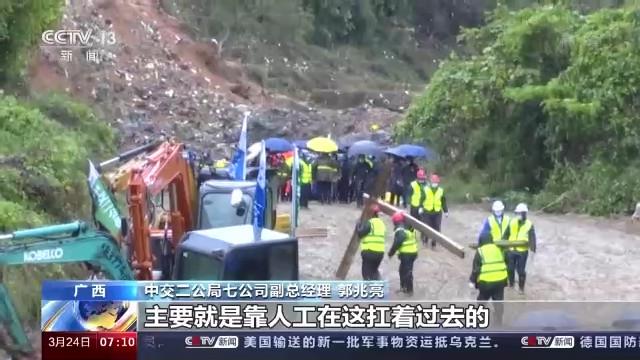 總臺央視記者 王世玉:我現(xiàn)在的位置是廣西梧州藤縣莫埌村的入口,也是通往事故核心區(qū)的一條必經(jīng)之路。大家看到在我身后的貨車正在進行物資的裝卸,裝卸的物資是竹排。為什么要進行竹排的運輸呢?因為(現(xiàn)場)從昨天晚上開始就一直在降雨,可以看到路面非常泥濘,在核心區(qū)內(nèi)通行更是非常困難。施工人員想到用竹排鋪滿在路面上,方便物資和人員的運輸和通行。