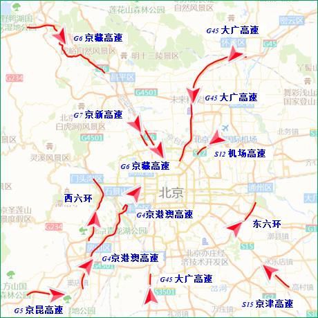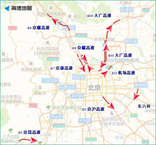 4日、5日12至20時,進(jìn)京方向的交通壓力將明顯上升,其中京藏高速八達(dá)嶺、居庸關(guān)、西三旗、北沙灘,京承高速黃港、太陽宮,京港澳高速西道口、琉璃河,京開高速榆垡、玉泉營等路段車流較為集中。