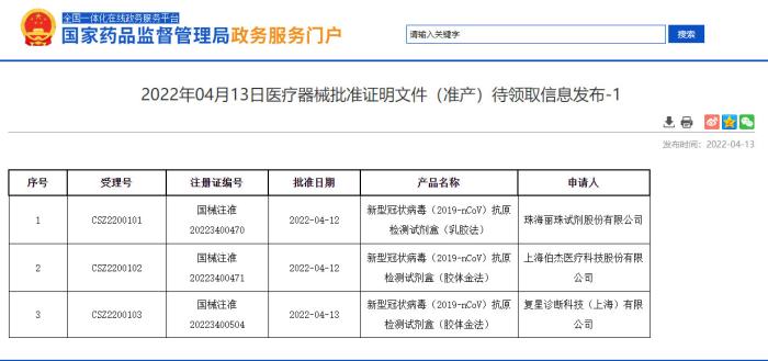 國家藥監(jiān)局又批準(zhǔn)3個(gè)新冠病毒抗原檢測試劑上市
