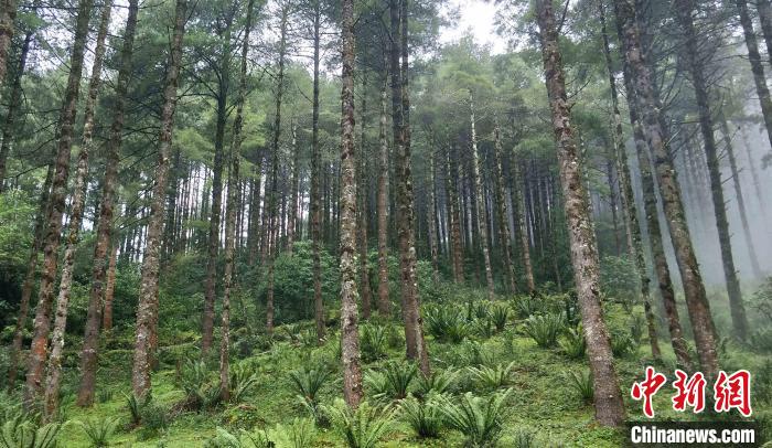 圖為保山騰沖新岐村的禿杉林?!×植?攝
