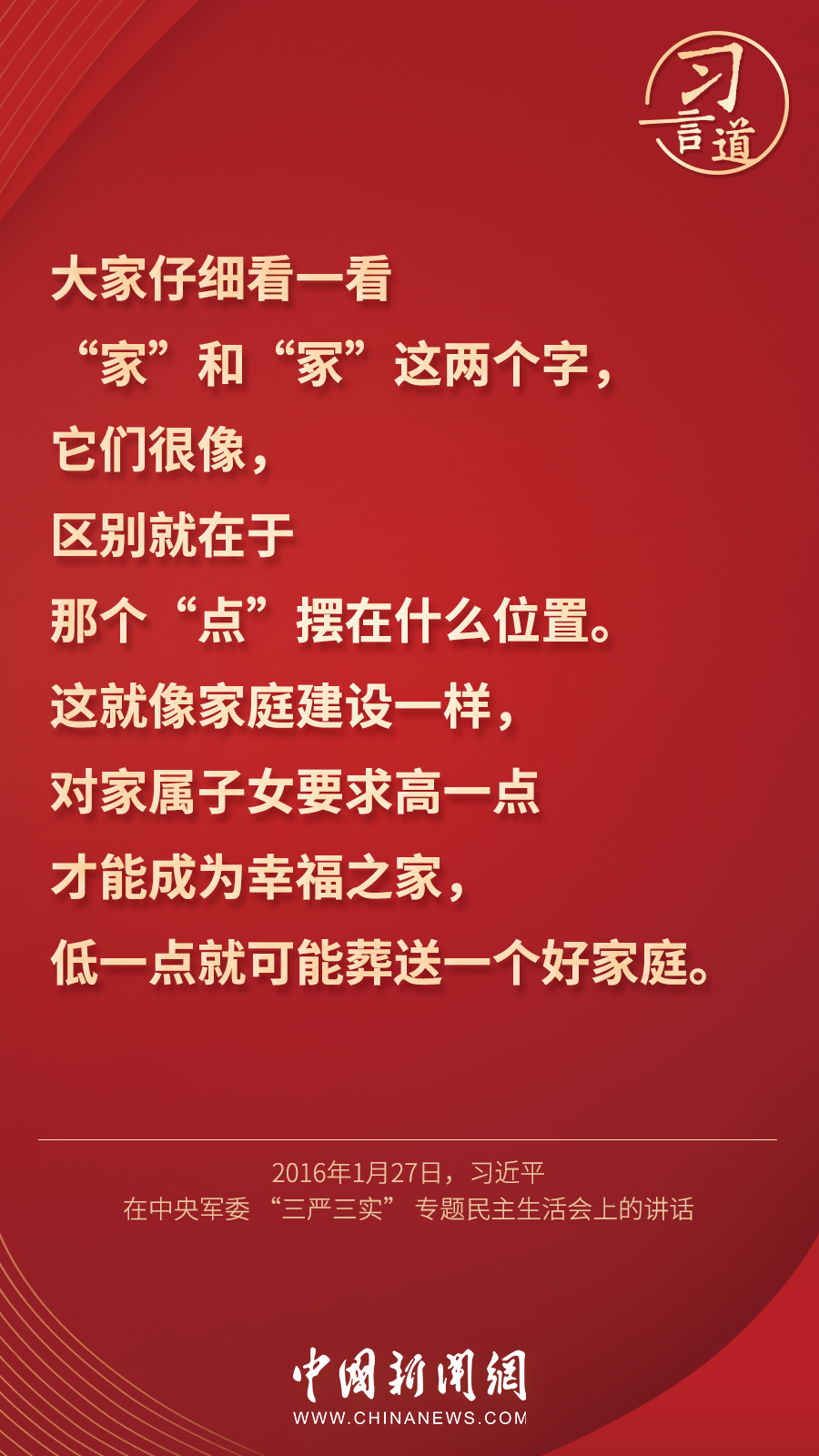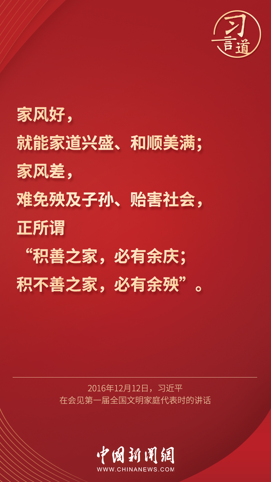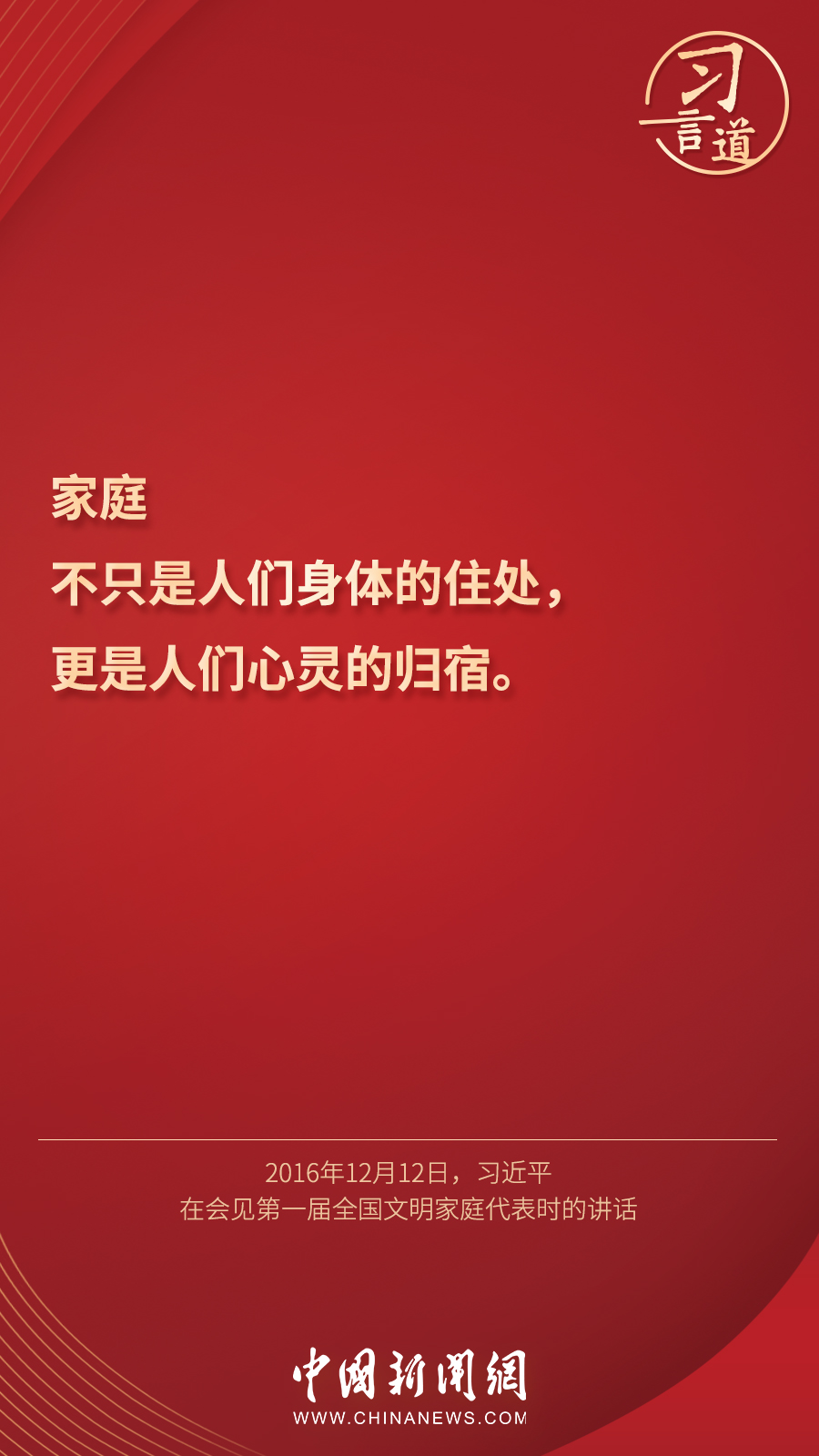 “家庭不只是人們身體的住處,更是人們心靈的歸宿。”近年來,習(xí)近平總書記發(fā)表過諸多關(guān)于重視親情、營造良好家風(fēng)的重要論述,他指出——