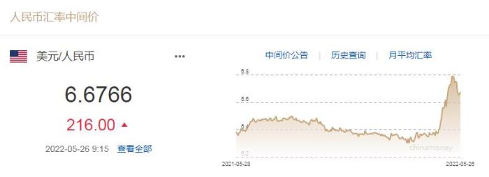 人民幣對美元中間價下調(diào)216個基點 1美元對人民幣6.6766元