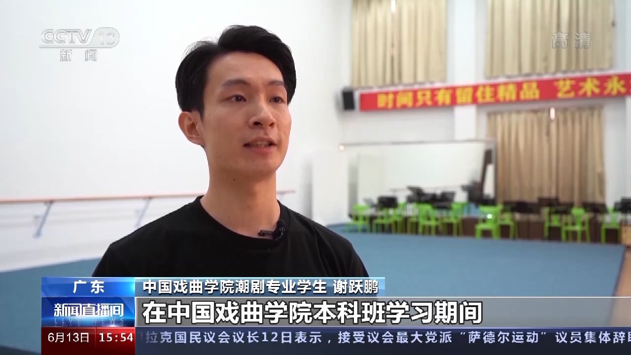 中國戲曲學(xué)院潮劇專業(yè)學(xué)生 謝躍鵬:本身我是武生行當(dāng),在中國戲曲學(xué)院本科班學(xué)習(xí)期間,我也是有意識(shí)在武戲方面下功夫,希望自己能學(xué)到更多規(guī)范性的動(dòng)作,一些高難度技巧。我還希望盡自己所能,把這些知識(shí)傳承給更多年輕人,把更多的武戲呈現(xiàn)給觀眾。