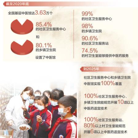 充分發(fā)揮中醫(yī)藥在基層健康服務(wù)中的獨(dú)特優(yōu)勢(shì),中醫(yī)館的作用不容忽視。今年3月,國(guó)家中醫(yī)藥管理局等10部門聯(lián)合印發(fā)的《基層中醫(yī)藥服務(wù)能力提升工程“十四五”行動(dòng)計(jì)劃》提出,到2025年,社區(qū)衛(wèi)生服務(wù)中心和鄉(xiāng)鎮(zhèn)衛(wèi)生院中醫(yī)館實(shí)現(xiàn)全覆蓋,鼓勵(lì)有條件的地方對(duì)15%的社區(qū)衛(wèi)生服務(wù)中心和鄉(xiāng)鎮(zhèn)衛(wèi)生院中醫(yī)館完成服務(wù)內(nèi)涵建設(shè)。