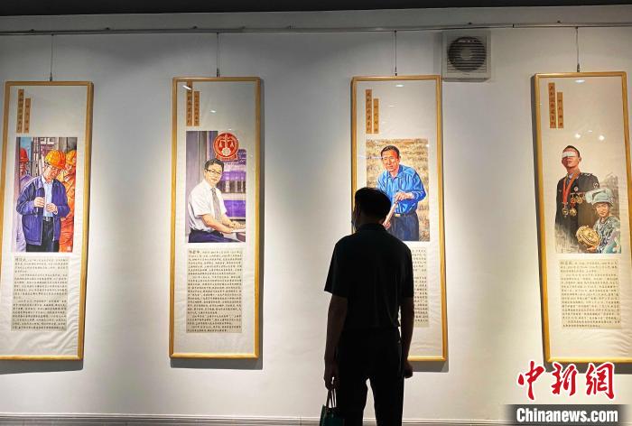 6月30日,“共和國脊梁”系列人物畫展在揚州江都開展。 崔佳明 攝