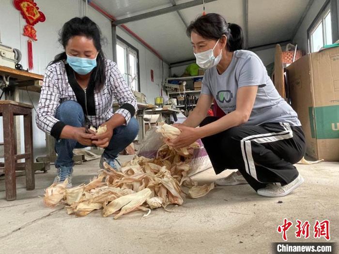 “巧姐”們在整理玉米葉 蒼雁 攝