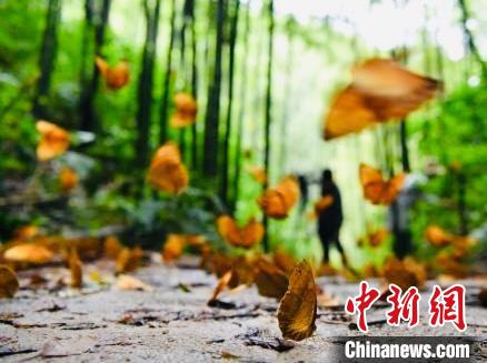 圖為金平縣的中國(guó)·紅河蝴蝶谷內(nèi)箭環(huán)蝶幼蟲在短時(shí)間大量集中羽化成蝶?!⑷疥?yáng) 攝