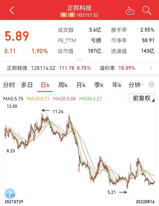 正邦科技股價走勢圖。