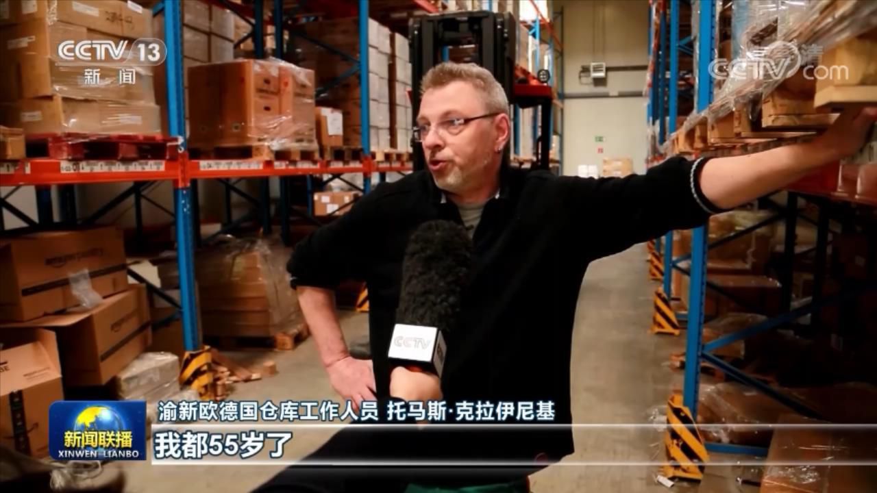 渝新歐德國(guó)倉(cāng)庫(kù)工作人員 托馬斯·克拉伊尼基:我從2019年9月開始在這里工作,現(xiàn)在明顯感覺(jué)活變多了。從小的輕工業(yè)產(chǎn)品到大的機(jī)械,應(yīng)有盡有。我都55歲了,竟然還能獲得一份固定的工作合同,這在德國(guó)可不常見(jiàn)。