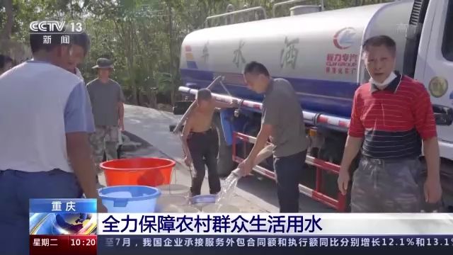 而在重慶綦江,當(dāng)?shù)貏t是通過投放儲(chǔ)水桶等方式保障缺水群眾的飲水。灑水車和消防車開到指定的儲(chǔ)水桶存放地點(diǎn),然后再把這些應(yīng)急水轉(zhuǎn)存到儲(chǔ)水桶里,村民們就可以從儲(chǔ)水桶里去取水。