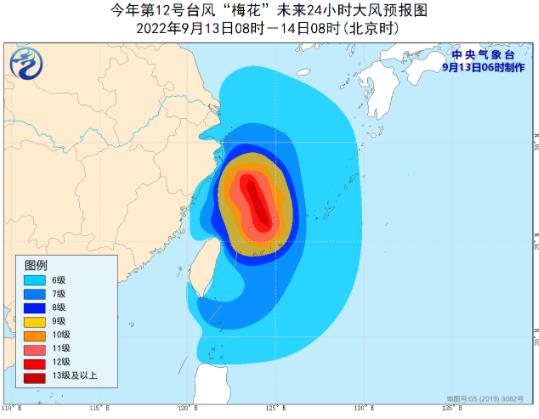 大風(fēng)預(yù)報(bào):9月13日8時(shí)至14日8時(shí),巴士海峽、臺(tái)灣海峽北部、臺(tái)灣以東洋面、黃海西南部海域、東海大部及釣魚島附近海域、長(zhǎng)江口區(qū)、杭州灣以及臺(tái)灣島北部和東部沿海、浙江沿海、福建北部沿海、上海沿海、江蘇東南部沿海將有6-8級(jí)大風(fēng),陣風(fēng)9-11級(jí),其中東海部分海域?qū)⒂?-11級(jí)大風(fēng),陣風(fēng)12-14級(jí),“梅花”中心經(jīng)過的附近海面的風(fēng)力有12-14級(jí),陣風(fēng)可達(dá)15-16級(jí)。
