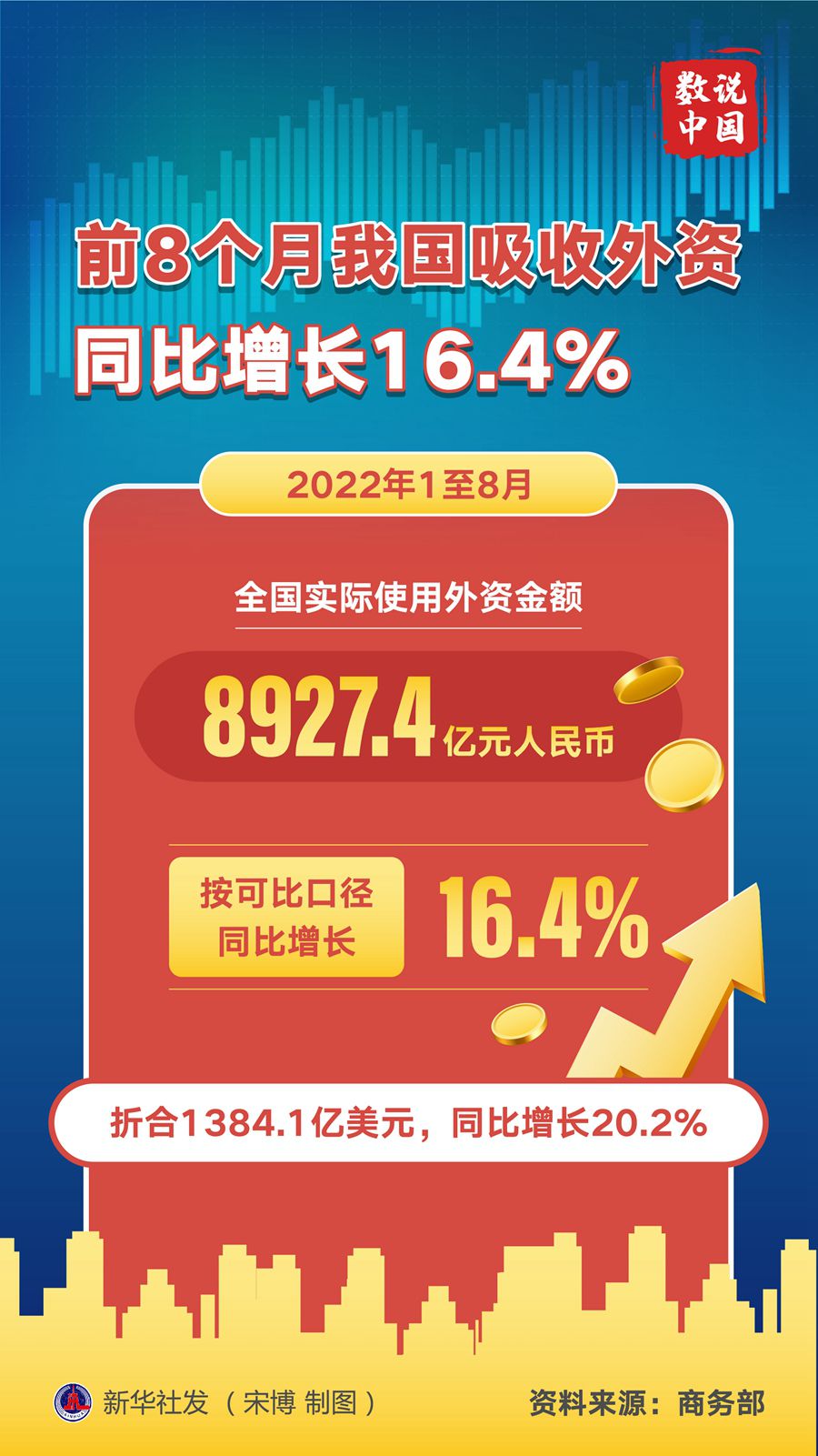 前8個(gè)月我國(guó)吸收外資同比增長(zhǎng)16.4%