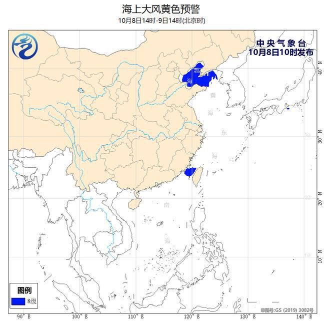 中央氣象臺10月8日10時繼續(xù)發(fā)布海上大風(fēng)黃色預(yù)警:
