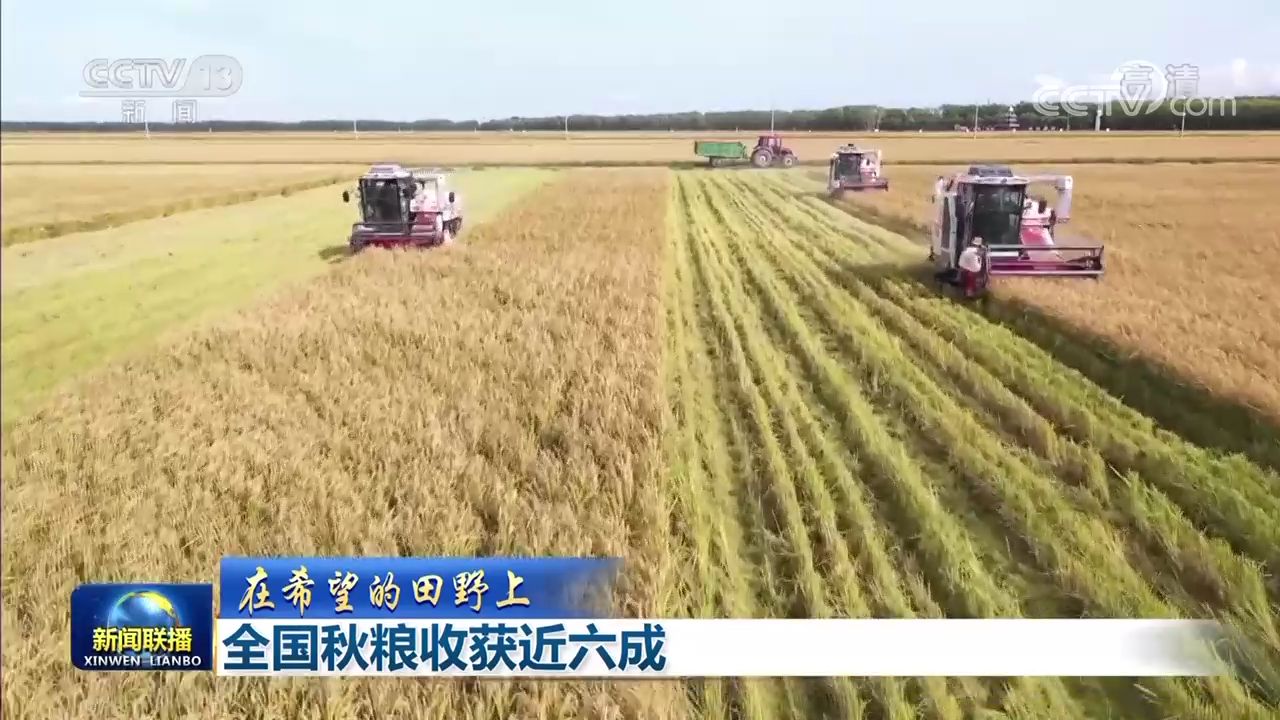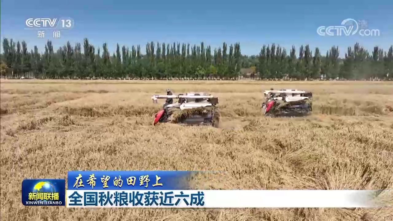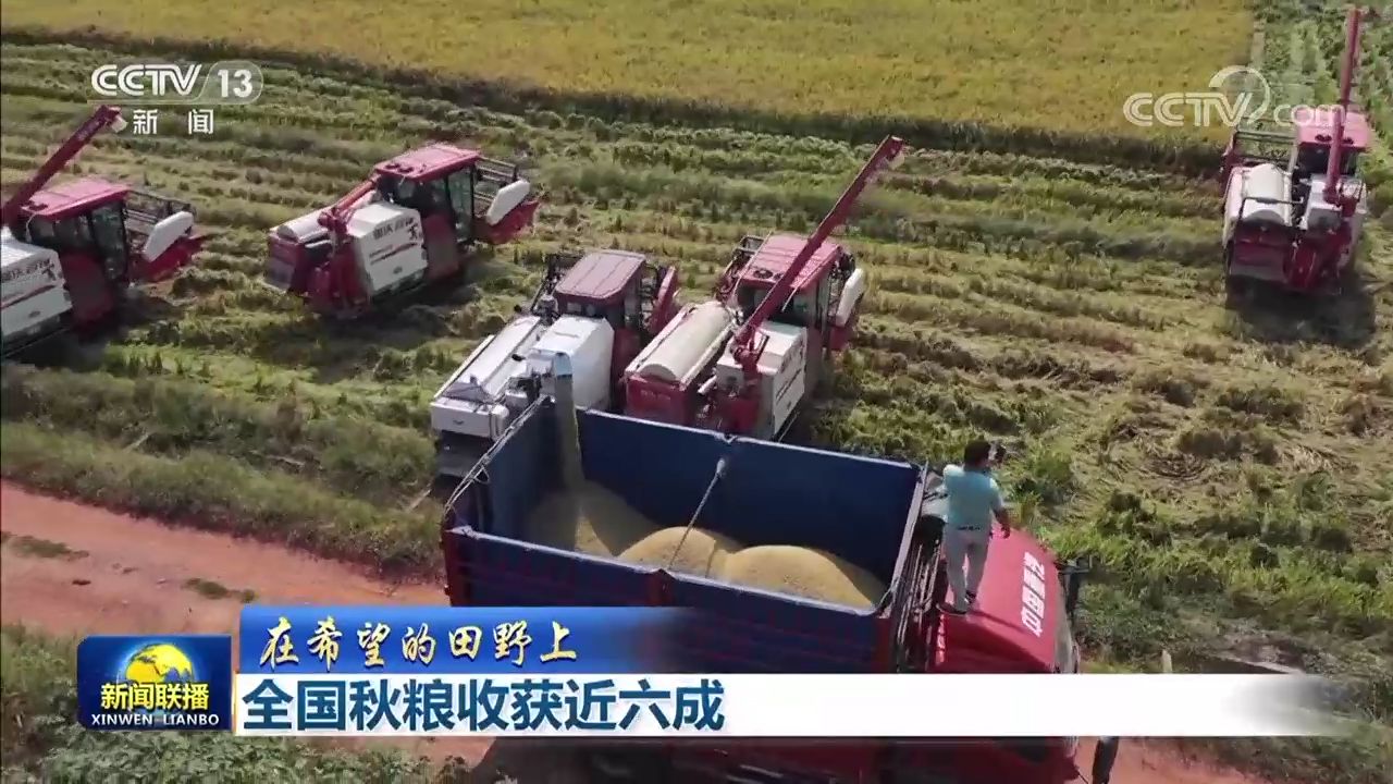 央視網(wǎng)消息(新聞聯(lián)播):據(jù)農(nóng)業(yè)農(nóng)村部最新農(nóng)情調(diào)度,目前,全國秋糧收獲近六成。各糧食產(chǎn)區(qū)搶抓農(nóng)時開展機收作業(yè),確保秋糧顆粒歸倉。