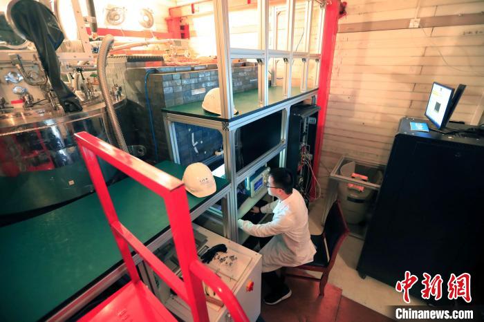 中國錦屏地下實驗室內(nèi),科研助理景明坤正在對樣本進行輻射檢測?!⊥趵?攝