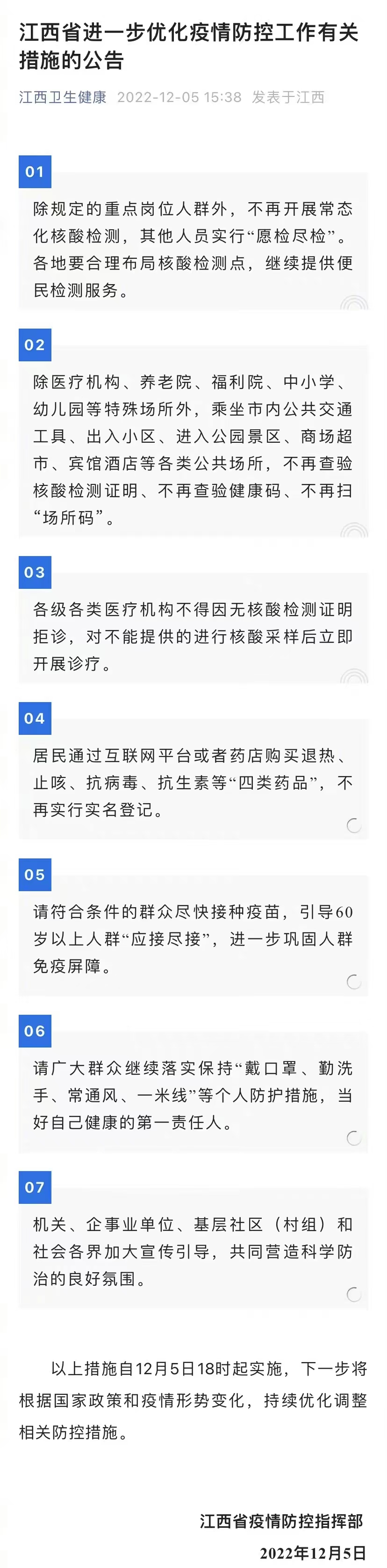 《江西省進(jìn)一步優(yōu)化疫情防控工作有關(guān)措施的公告》截圖