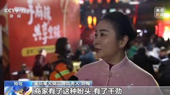 重慶市商務(wù)委員會(huì)服務(wù)業(yè)發(fā)展處副處長(zhǎng) 張毓益:這一周來(lái)看,還是有一點(diǎn)點(diǎn)超出我們的預(yù)期,這也和我們重慶人喜歡熱鬧,喜歡大家出來(lái)聚會(huì)這種性格有關(guān)系。這一點(diǎn)也是讓我們看到了迅速走出前段時(shí)間的經(jīng)營(yíng)困境非常好的一個(gè)利好信號(hào)。