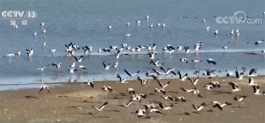 由于今年氣溫偏高,候鳥北遷的時(shí)間比往年提前了10天以上。在溫暖的陽光下,候鳥們或在高空展翅,或在淺灘覓食,其中不乏各種珍稀鳥類。湖面煙波浩渺,空中萬鳥翔集,蔚為壯觀。