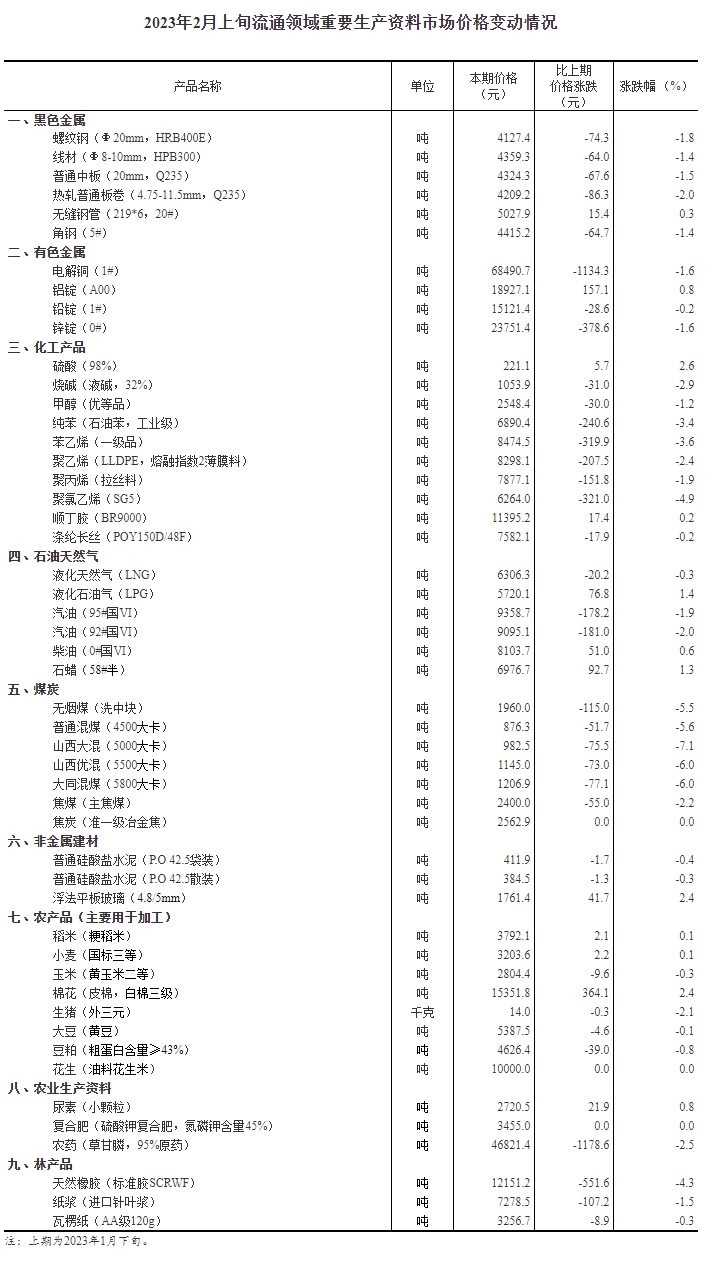 中新網(wǎng)2月14日電 據(jù)國(guó)家統(tǒng)計(jì)局網(wǎng)站14日消息,據(jù)對(duì)全國(guó)流通領(lǐng)域9大類50種重要生產(chǎn)資料市場(chǎng)價(jià)格的監(jiān)測(cè)顯示,2023年2月上旬與1月下旬相比,12種產(chǎn)品價(jià)格上漲,35種下降,3種持平。其中,生豬(外三元)價(jià)格為14元/千克,較1月下旬相比下降2.1%。(中新財(cái)經(jīng))