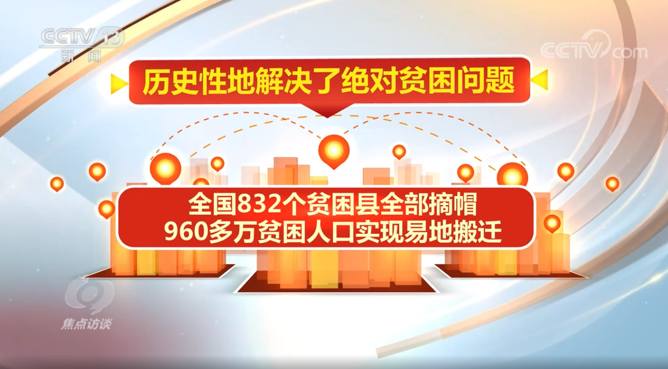 這五年,我國(guó)脫貧攻堅(jiān)任務(wù)勝利完成。經(jīng)過(guò)八年持續(xù)努力,近1億農(nóng)村貧困人口實(shí)現(xiàn)脫貧,全國(guó)832個(gè)貧困縣全部摘帽,960多萬(wàn)貧困人口實(shí)現(xiàn)易地搬遷,歷史性地解決了絕對(duì)貧困問(wèn)題。