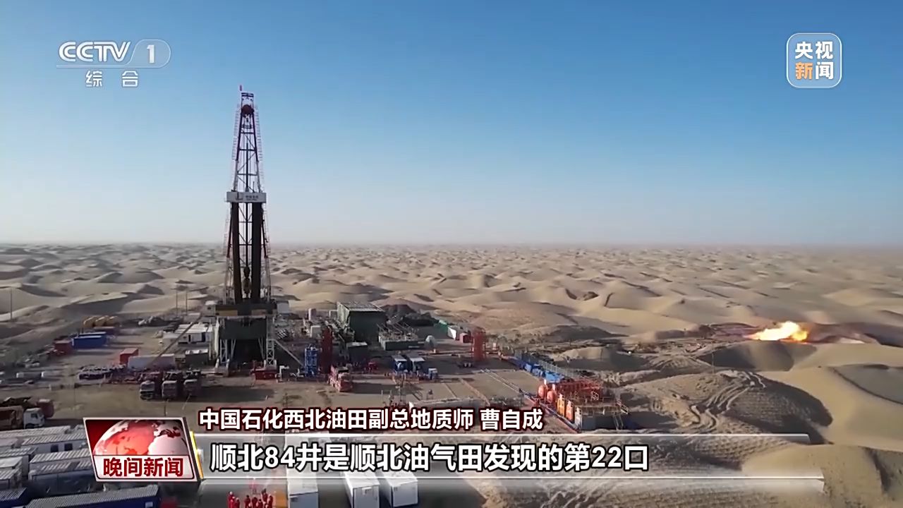 中國石化西北油田副總地質(zhì)師 曹自成:順北84井是順北油氣田發(fā)現(xiàn)的第22口日產(chǎn)油當(dāng)量超千噸的鉆井,這個(gè)油氣田潛力非常大,前景廣闊。