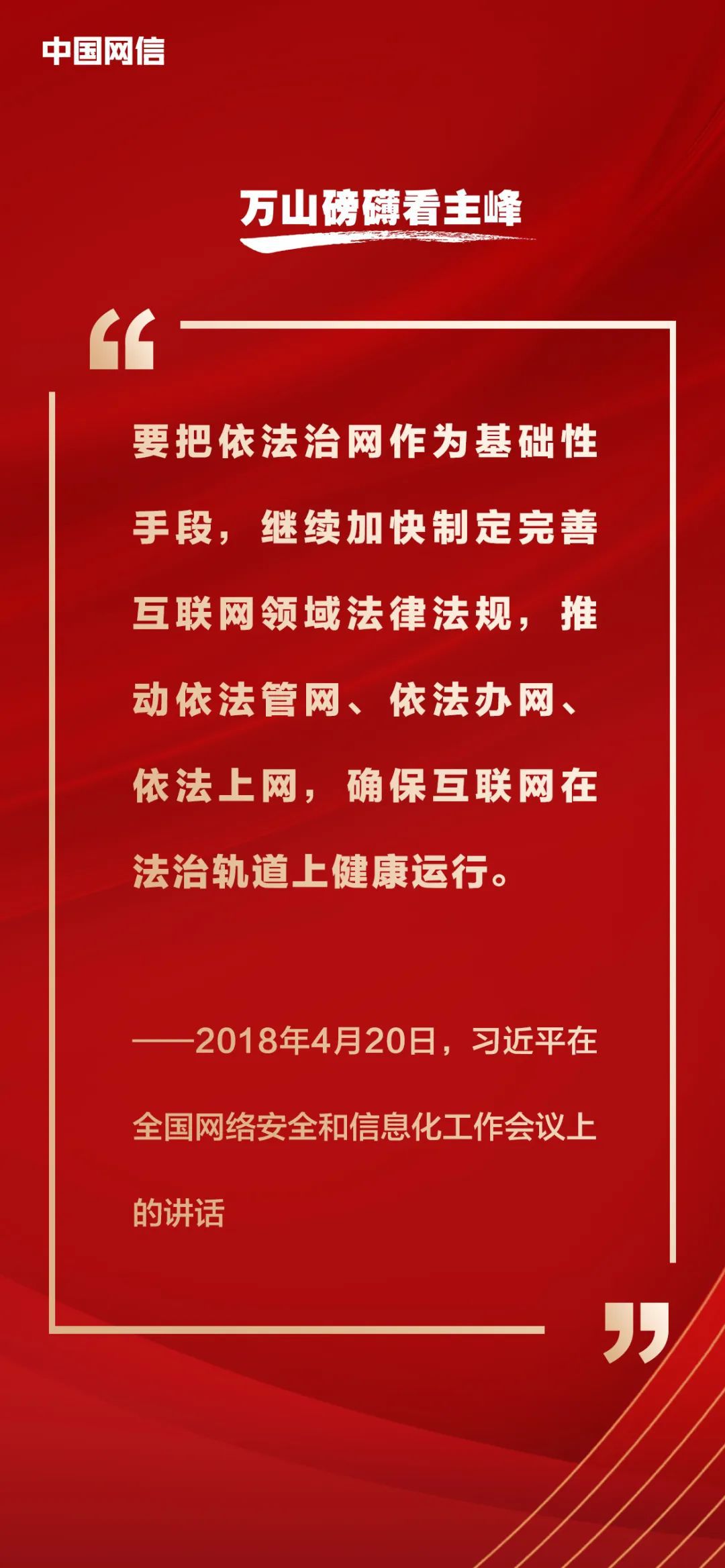 2018年4月20日至21日,全國(guó)網(wǎng)絡(luò)安全和信息化工作會(huì)議召開(kāi),習(xí)近平總書(shū)記出席會(huì)議并發(fā)表重要講話(huà),為加快推進(jìn)網(wǎng)絡(luò)強(qiáng)國(guó)建設(shè)指明了前進(jìn)方向、提供了根本遵循?!吨袊?guó)網(wǎng)信》雜志梳理相關(guān)重要論述,與你一起回顧學(xué)習(xí)。