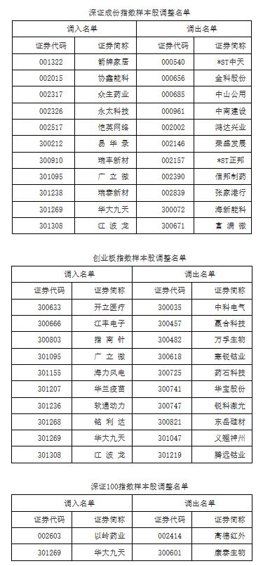 深交所:調(diào)整深證成指、創(chuàng)業(yè)板指、深證100等指數(shù)樣本股