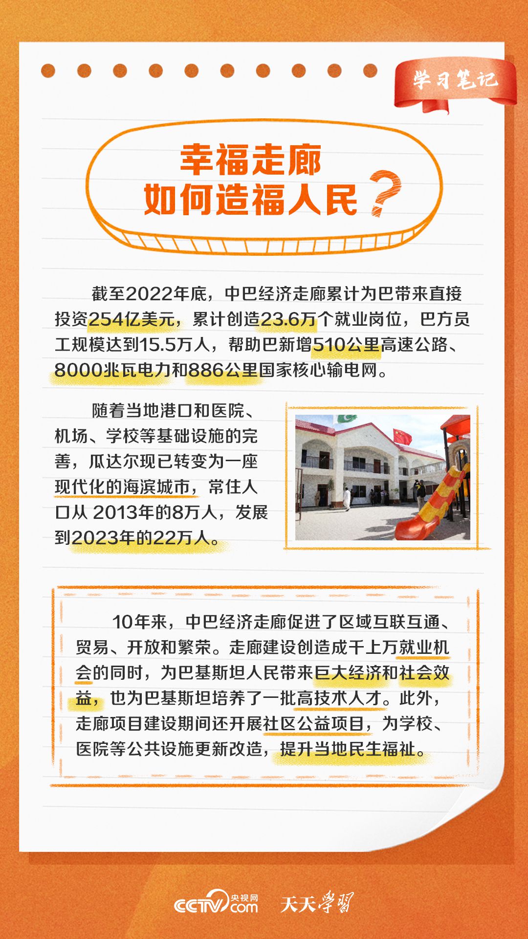 今年是習(xí)近平主席提出共建“一帶一路”倡議十周年,也是中巴經(jīng)濟走廊啟動十周年。經(jīng)過十年的發(fā)展,中巴經(jīng)濟走廊已成為中巴友誼“新標桿”。央視網(wǎng)《天天學(xué)習(xí)·學(xué)習(xí)筆記》特梳理中巴經(jīng)濟走廊相關(guān)知識點,與您一起學(xué)習(xí)。