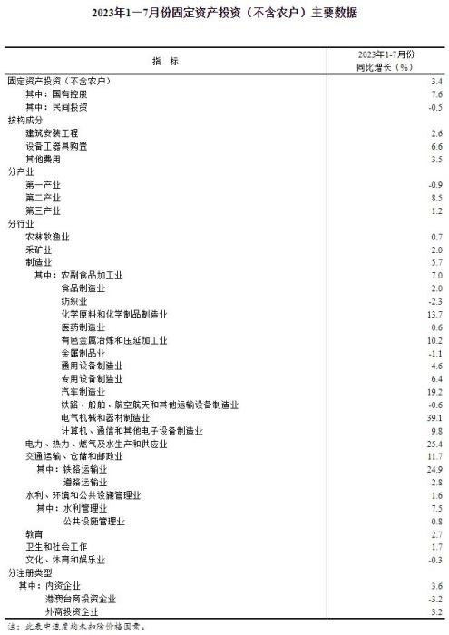 國(guó)家統(tǒng)計(jì)局:1—7月份全國(guó)固定資產(chǎn)投資增長(zhǎng)3.4%