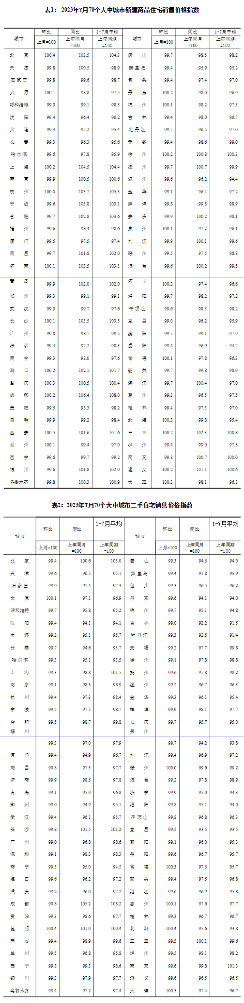 國家統(tǒng)計局:7月份商品住宅銷售價格小幅波動