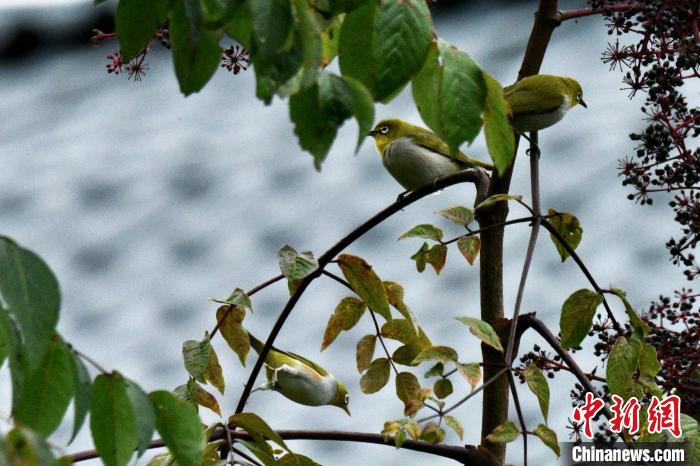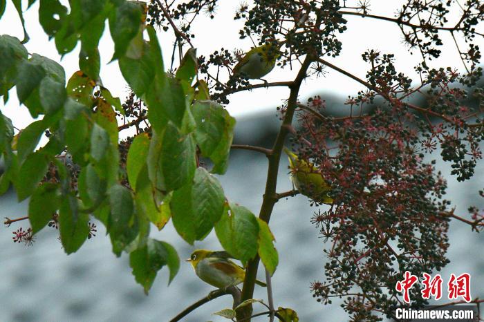 圖為在云南大山包黑頸鶴國(guó)家級(jí)自然保護(hù)區(qū)拍攝到的紅脅繡眼鳥和灰腹繡眼鳥?!翘?攝