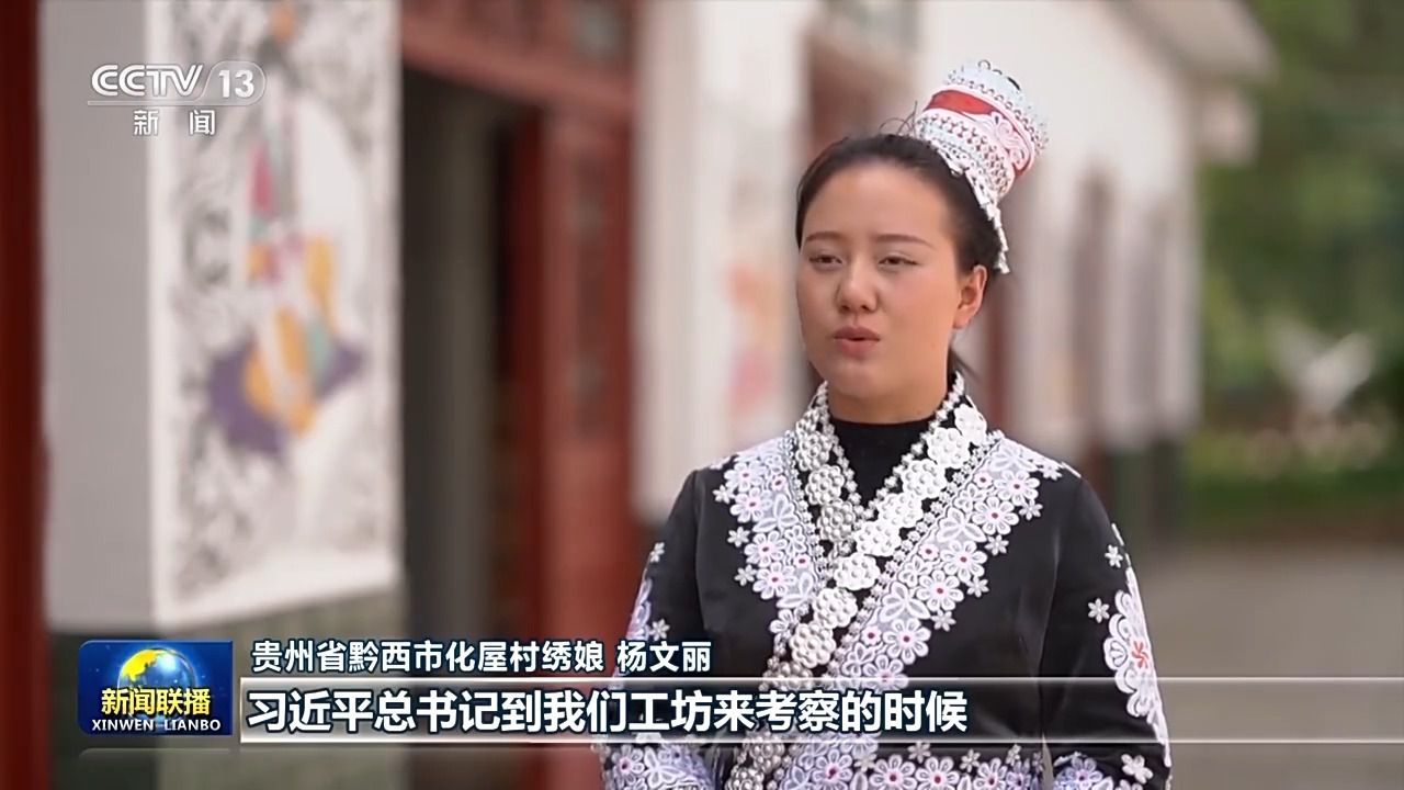 貴州省黔西市化屋村繡娘 楊文麗:習近平總書記到我們工坊來考察的時候,囑咐我們要把苗繡傳承好,發(fā)展好,推動鄉(xiāng)村振興。這也為我們發(fā)展好苗繡產業(yè)打開了一個新思路。
