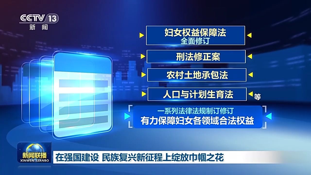 新時代,維護婦女權益,法治保障堅實有力。首部民法典頒行,首部家庭教育促進法實施,婦女權益保障法全面修訂,刑法修正案、農村土地承包法、人口與計劃生育法等一系列法律法規(guī)制訂修訂,有力保障婦女各領域合法權益。