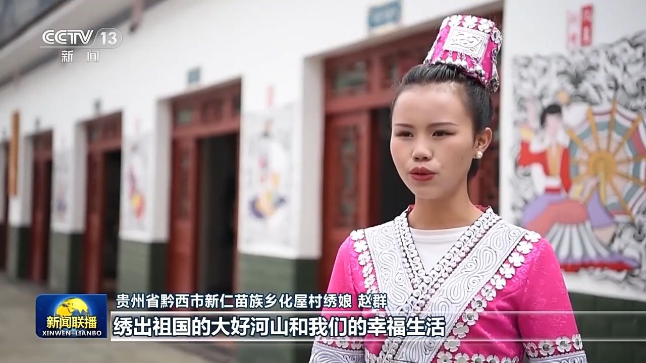 貴州省黔西市新仁苗族鄉(xiāng)化屋村繡娘 趙群:我也希望通過我們的一針一線,繡出祖國的大好河山和我們的幸福生活。