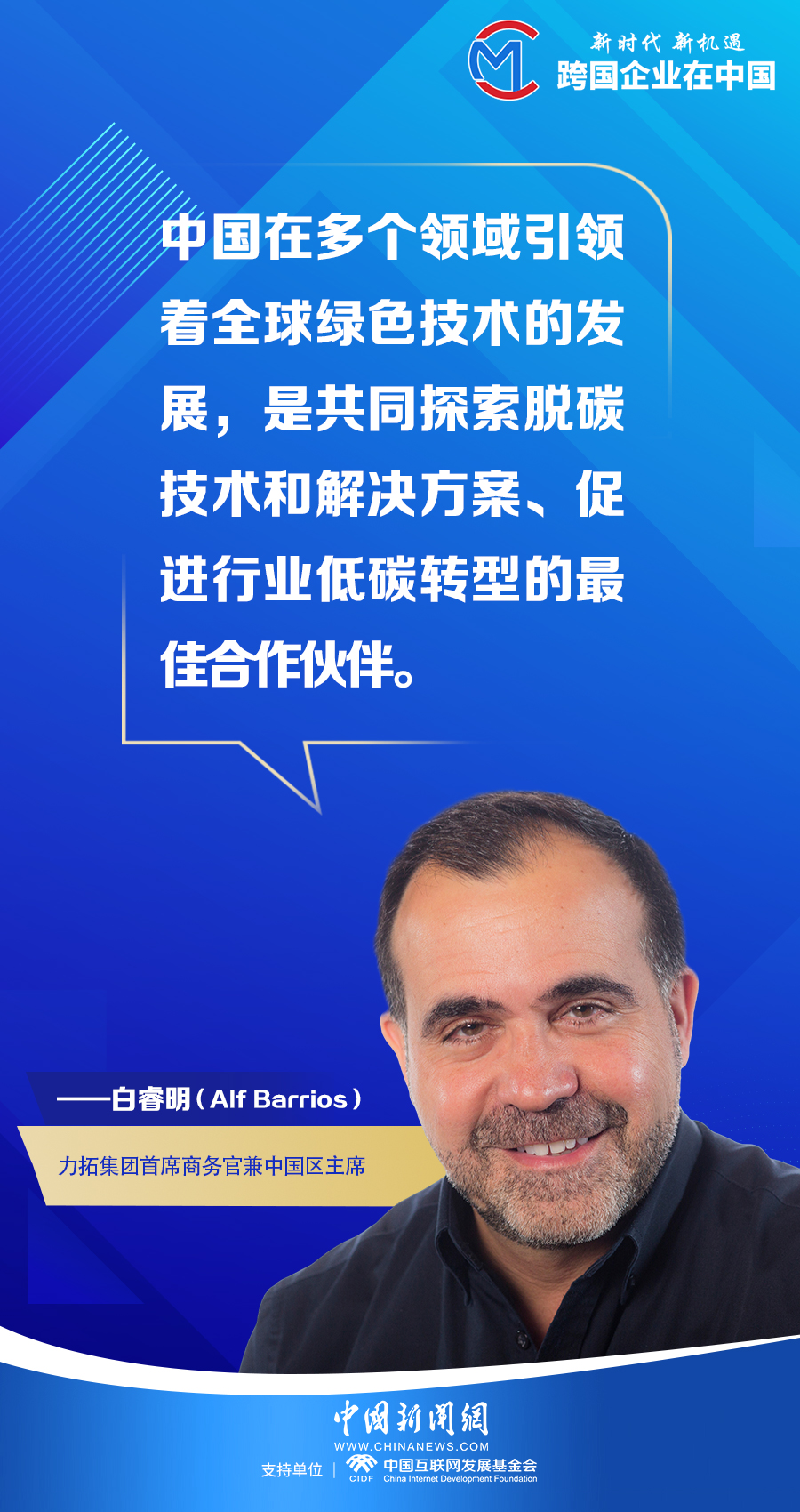 “我們非常榮幸能夠參與中國(guó)的發(fā)展,在許多方面,中國(guó)的成功就是我們的成功?!?/p>