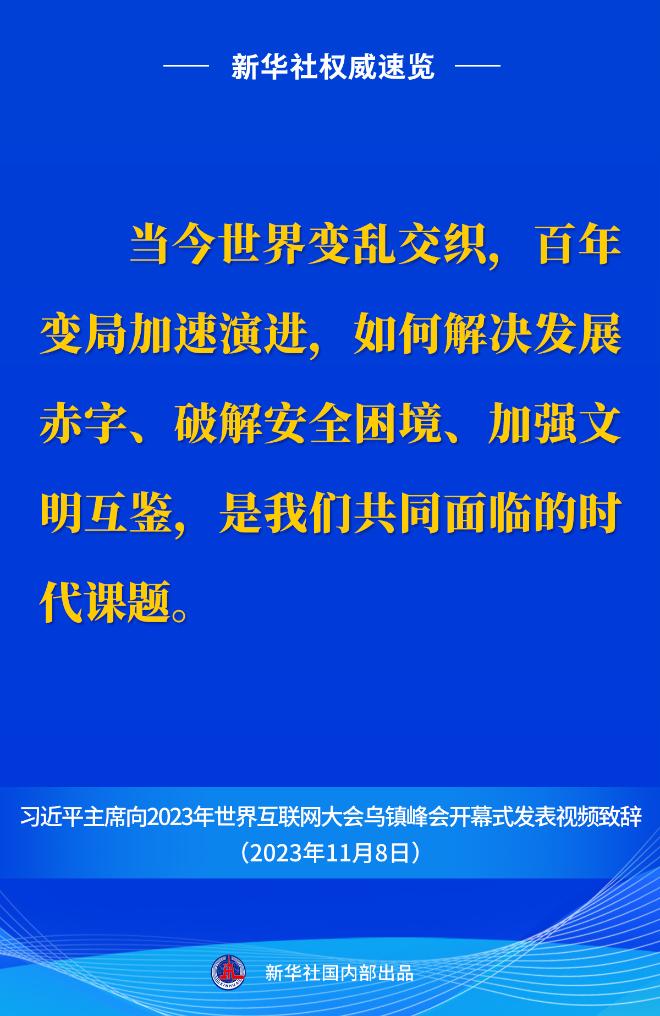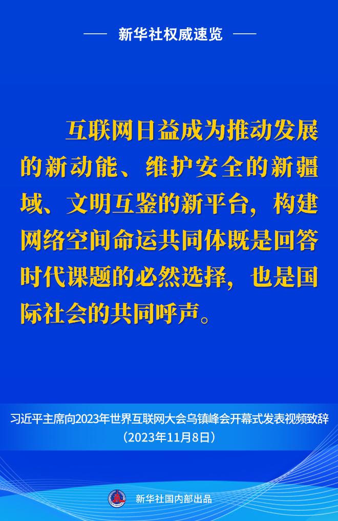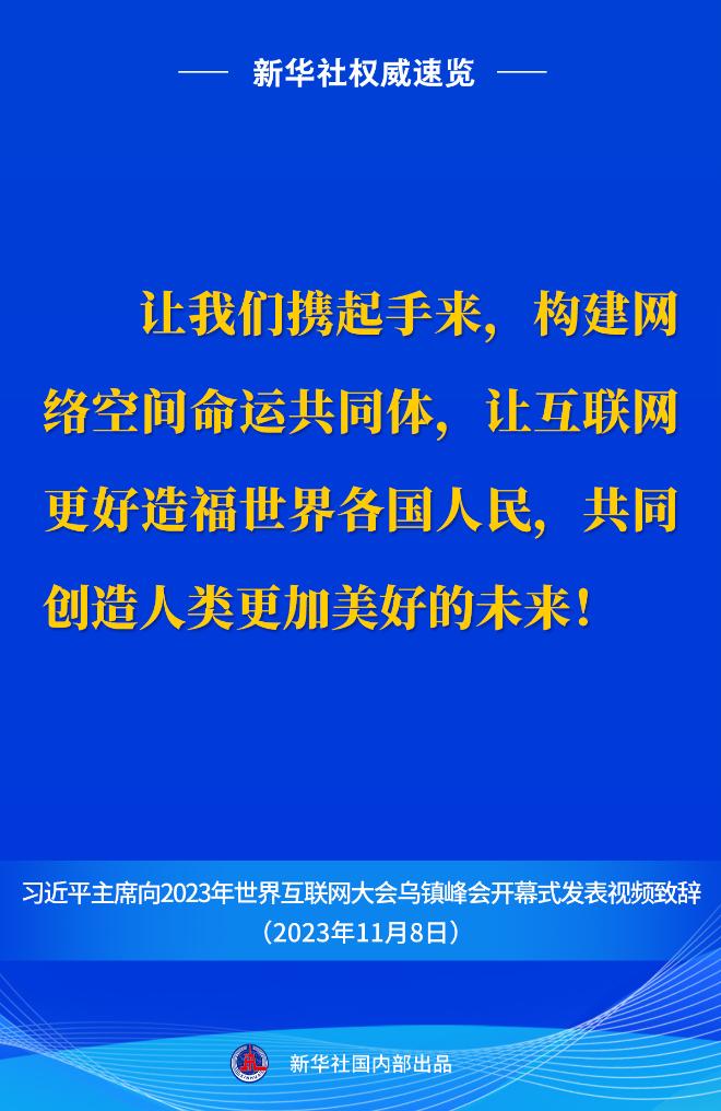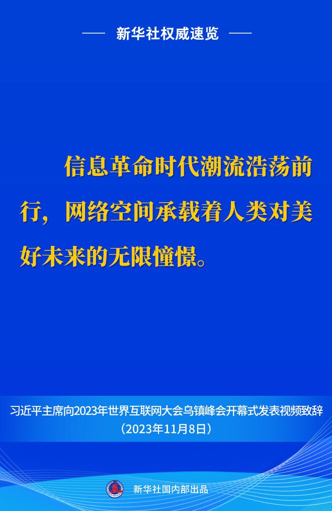 新華社權(quán)威速覽丨習(xí)近平主席向2023年世界互聯(lián)網(wǎng)大會(huì)烏鎮(zhèn)峰會(huì)開幕式視頻致辭金句