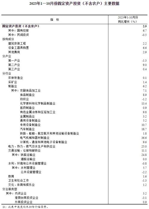 國家統(tǒng)計局:1—10月份全國固定資產(chǎn)投資增長2.9%