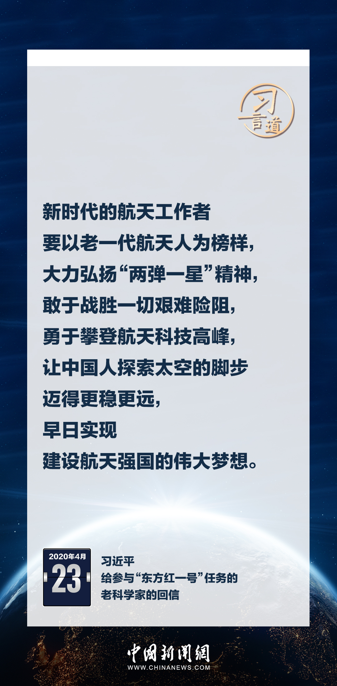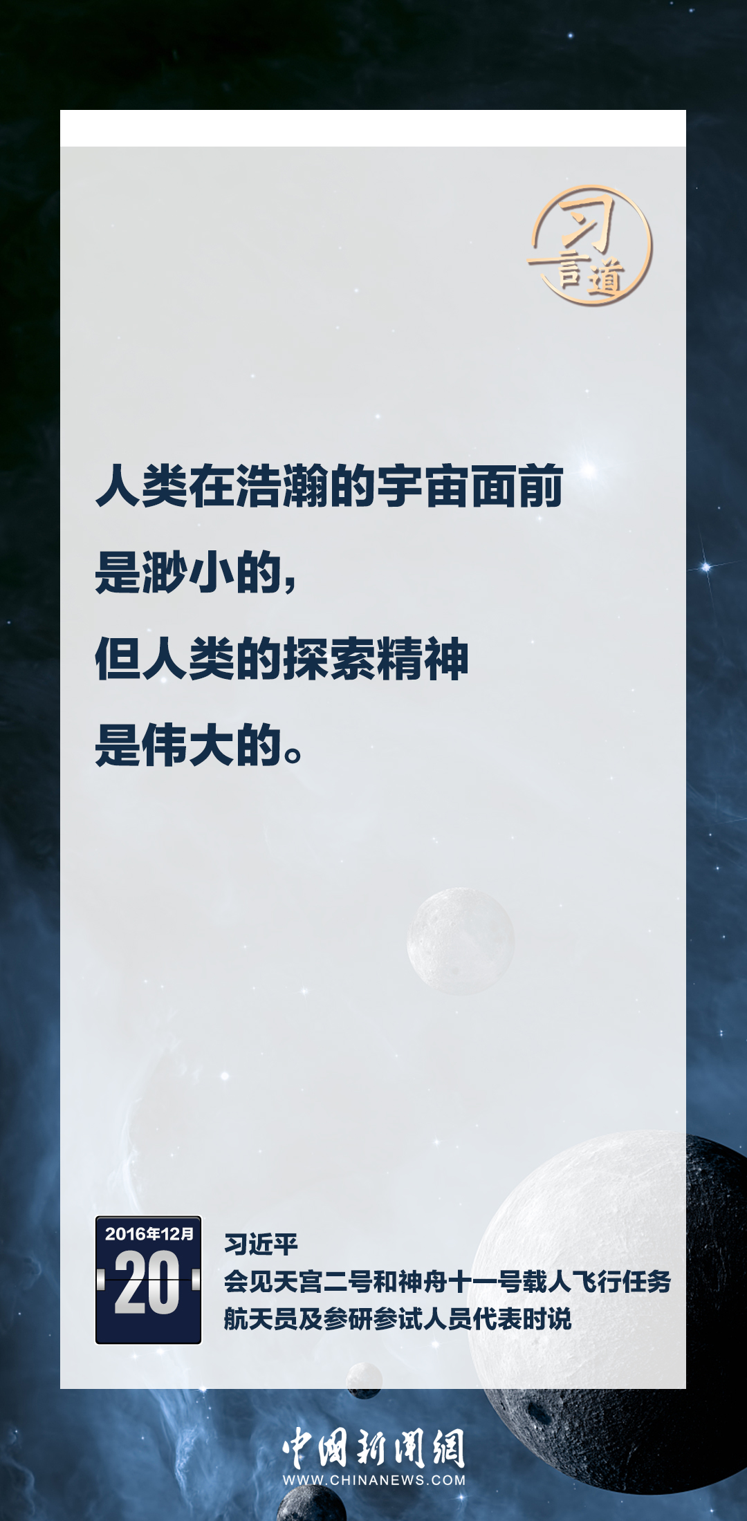 建設(shè)航天強國要靠一代代人接續(xù)奮斗。在不同場合,習近平總書記頻頻提及航天精神,激勵一代代中國人不斷奮進、筑夢太空。