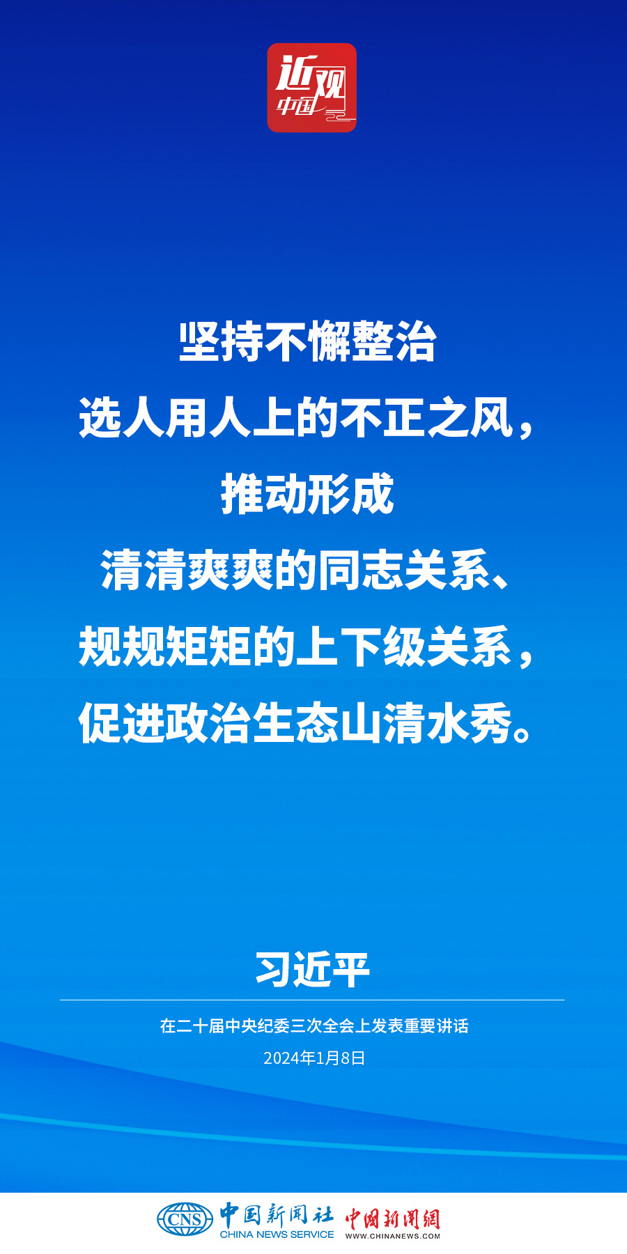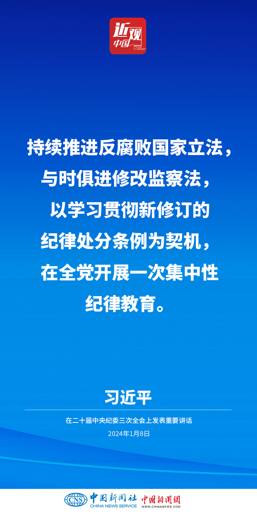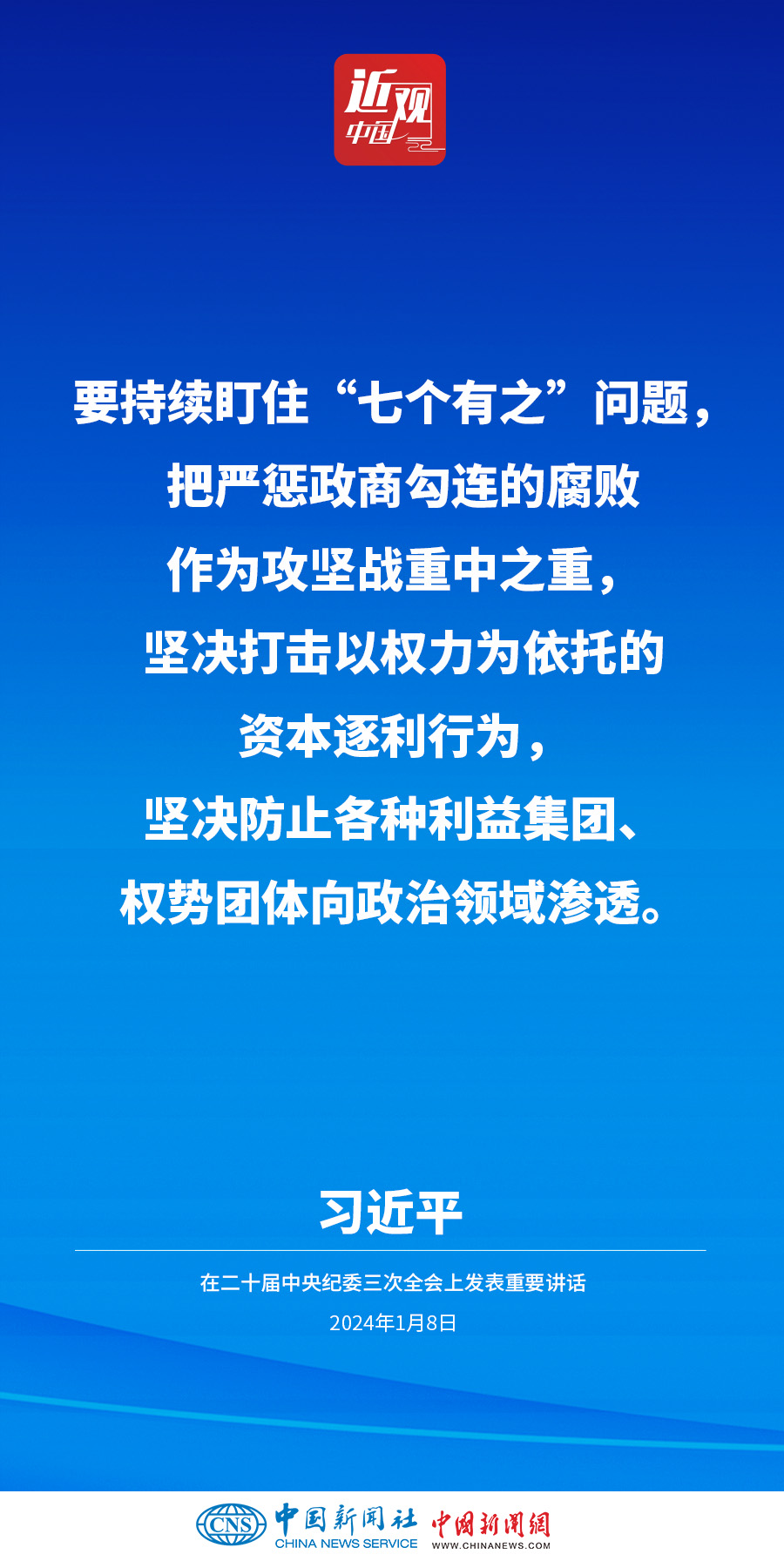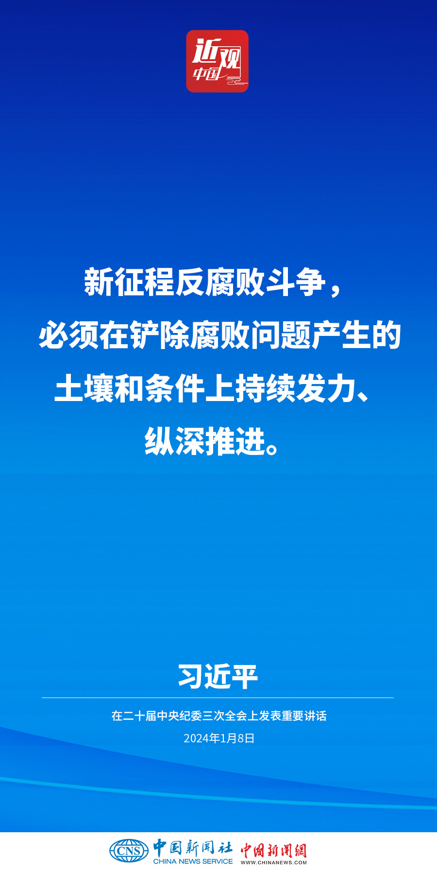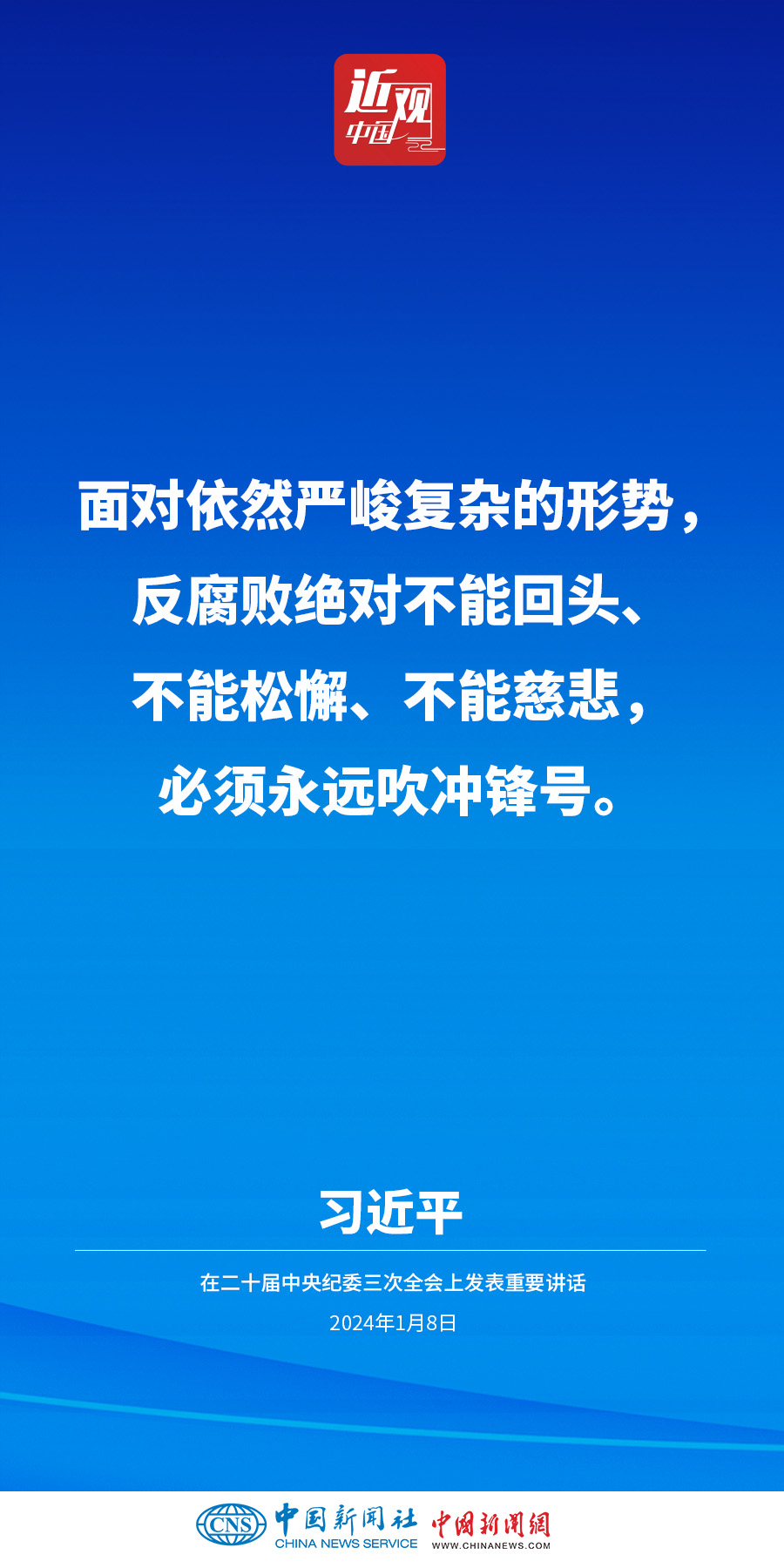 中共中央總書記、國家主席、中央軍委主席習近平8日上午在中國共產(chǎn)黨第二十屆中央紀律檢查委員會第三次全體會議上發(fā)表重要講話。他強調(diào)——