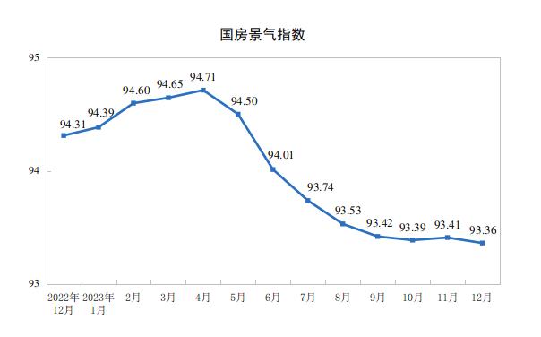 2023年12月份,房地產(chǎn)開發(fā)景氣指數(shù)(簡稱“國房景氣指數(shù)”)為93.36。
