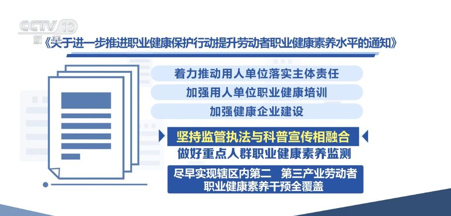 央視網(wǎng)消息:國(guó)家衛(wèi)生健康委、國(guó)家疾控局、教育部等八部門近日聯(lián)合印發(fā)《關(guān)于進(jìn)一步推進(jìn)職業(yè)健康保護(hù)行動(dòng)提升勞動(dòng)者職業(yè)健康素養(yǎng)水平的通知》?!锻ㄖ访鞔_,進(jìn)一步加強(qiáng)職業(yè)健康管理,加大重點(diǎn)人群職業(yè)健康素養(yǎng)干預(yù)力度,到2030年,力爭(zhēng)實(shí)現(xiàn)重點(diǎn)行業(yè)勞動(dòng)者對(duì)本崗位主要危害及防護(hù)知識(shí)知曉率不低于90%。